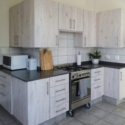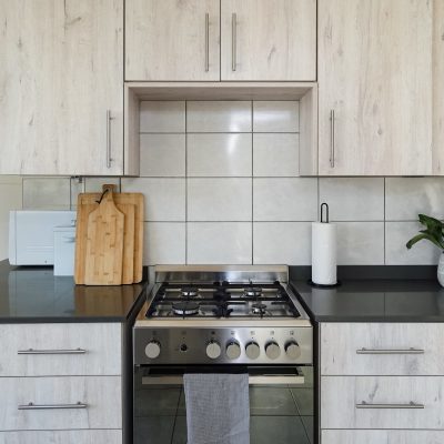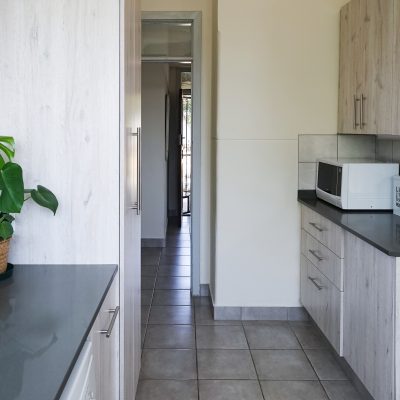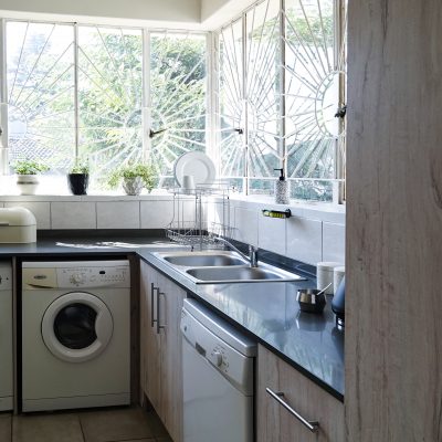 We maximised the use of the space by adding a two-bowl sink as well as a giant two door pantry cupboard. Swivel casters have been added to the bottom of the free-standing stove to make cleaning behind it a breeze.